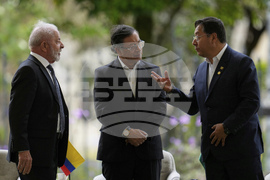 Brazil's President Luiz Inacio Lula Da Silva, left, Colombia's President Gustavo Petro, center and Bolivia's President Luis Arce attend a meeting of leaders of the of the Amazon Cooperation Treaty Organization in Bogota, Colombia, Friday, Aug. 22, 2025. (AP Photo/Fernando Vergara)