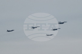 Chinese J-16 fighter jets and J-35A stealth fighter jets take part in a rehearsal ahead of the Sept. 3 military parade to commemorate the 80th anniversary of Japan's World War II surrender, in Beijing, Sunday, Aug. 24, 2025. (AP Photo/Andy Wong)