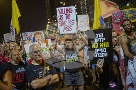 People take part in a protest demanding the end of the war and immediate release of hostages held by Hamas in the Gaza Strip, and against Prime Minister Benjamin Netanyahu's government in Tel Aviv, Israel, Saturday, Aug 23, 2025. (AP Photo/Ohad Zwigenberg)