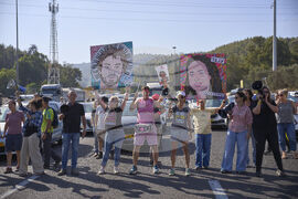 Einav Zangauker, center, mother of Matan Zangauker, who is held hostage by Hamas, holds a sign as people take part in a protest demanding the end of the war and immediate release of hostages held by Hamas in the Gaza Strip, and against Prime Minister Benjamin Netanyahu's government in Tel Aviv, Israel, Saturday, Aug. 23, 2025. (AP Photo/Ohad Zwigenberg)
