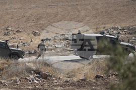 An Israeli soldier walks on a road following a military raid in the West Bank village of Al-Mughayyir, Sunday, Aug. 24, 2025. (AP Photo/Majdi Mohammed)