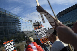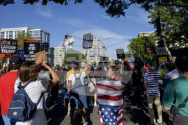 People protest against President Donald Trump's use of federal law enforcement and National Guard troops in the city during a march in Washington, Saturday, Aug. 23, 2025. (AP Photo/Rod Lamkey, Jr.)