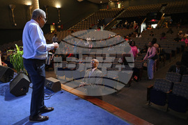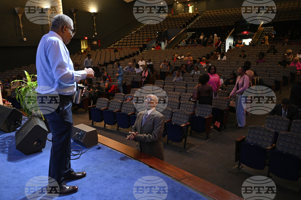 Attendees arrive before Rev. Al Sharpton delivers a sermon at Howard University's Cramton Auditorium, Sunday, Aug. 24, 2025, in Washington, to announce a national drive in support of District of Columbia Mayor Muriel Bowser, as President Donald Trump's administration continues it's use of federal law enforcement and National Guard troops in the city. (AP Photo/John McDonnell)