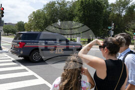 An ICE police SUV patrols the National Mall Saturday, Aug. 23, 2025, in Washington. (AP Photo/Jose Luis Magana)