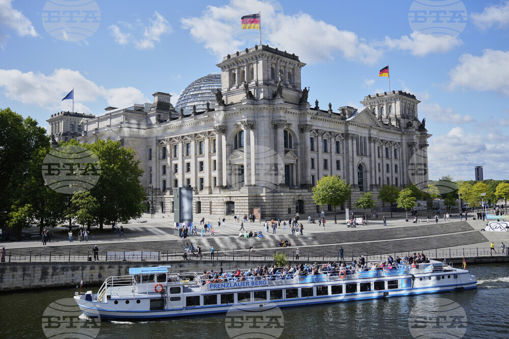A Tourist boat on the Spree River passes in front of the Reichstag building, as people enjoy a sunny weekend, in Berlin, Germany, Sunday, Aug. 24, 2025. (AP Photo/Ebrahim Noroozi)