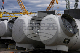 FILE - Wind turbine components sit at New London State Pier, April 16, 2025, in New London, Conn. (AP Photo/Julia Demaree Nikhinson, File)