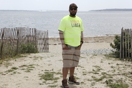 Tony Vaz, a rope access technician, stands near the beach in North Kingstown, R.I., Monday, Aug. 25, 2025, after a news conference where Democratic politicians and union members, including Vaz, called on the Trump administration to allow work to continue on the Revolution Wind offshore wind farm. (AP Photo/Jennifer McDermott)