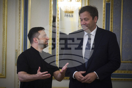 Ukrainian President Volodymyr Zelenskyy listens to German Vice Chancellor and Finance Minister Lars Klingbeil during their meeting in Kyiv, Ukraine, Monday, Aug. 25, 2025. (AP Photo/Efrem Lukatsky)
