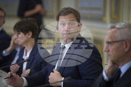 German Vice Chancellor and Finance Minister Lars Klingbeil listens to Ukrainian President Volodymyr Zelenskyy during their meeting in Kyiv, Ukraine, Monday, Aug. 25, 2025. (AP Photo/Efrem Lukatsky)