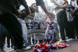 FILE - People burn an American flag in Los Angeles, Saturday, Nov. 7, 2020. (AP Photo/Ringo H.W. Chiu, File)