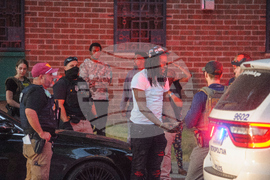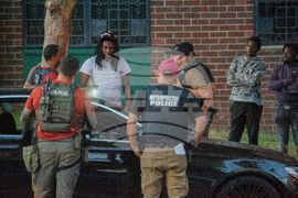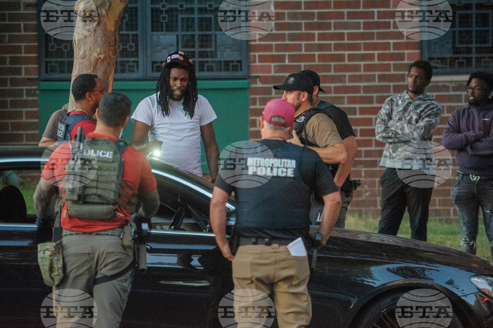 A man has his car searched by multiple federal agencies including Department of Homeland Security investigations, Bureau of Alcohol, Tobacco, Firearms and Explosives (ATF) and the Washington Metro Police Department in Washington, Monday, Aug. 25, 2025. (AP Photo/Rod Lamkey, Jr.)