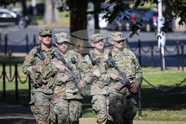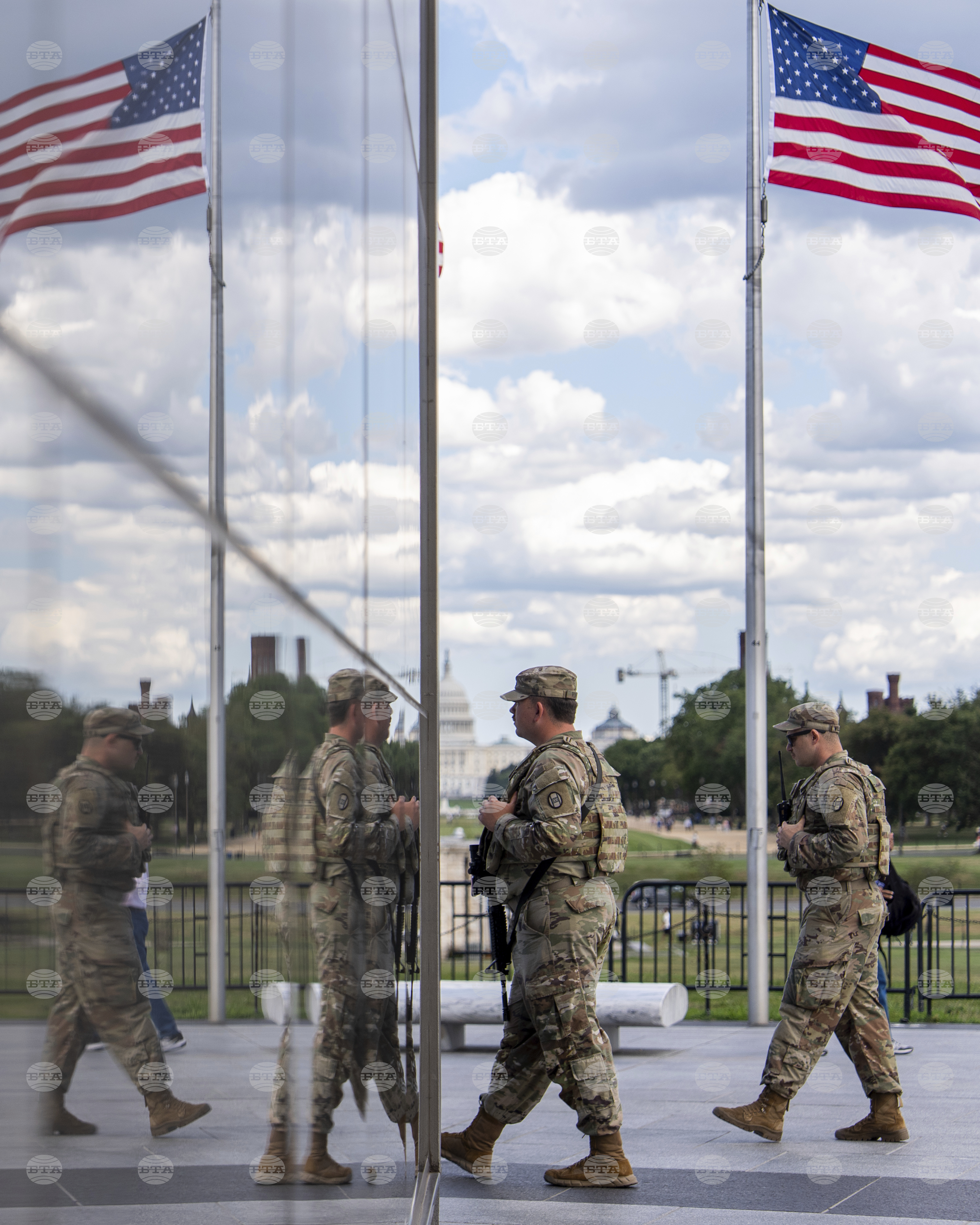 South Carolina National Guardsmen patrol the National Mall, Tuesday, Aug. 26, 2025, in Washington. (AP Photo/Julia Demaree Nikhinson)