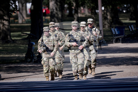 Armed National Guard soldiers from West Virginia patrol the Mall near the Capitol in Washington, as part of President Donald Trump's order to impose federal law enforcement in the nation's capital, Tuesday, Aug. 26, 2025. (AP Photo/J. Scott Applewhite)