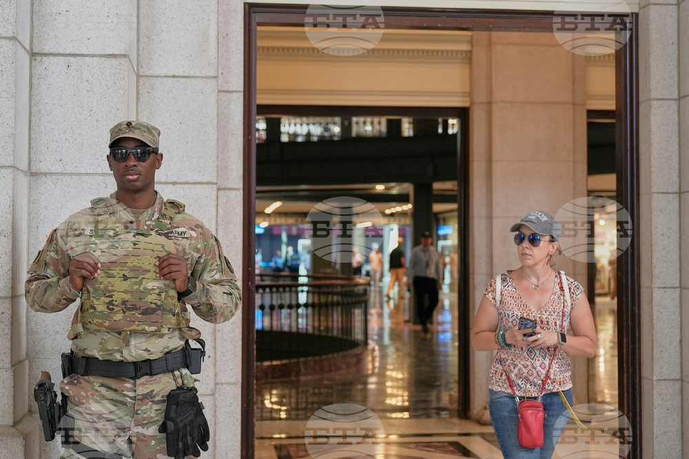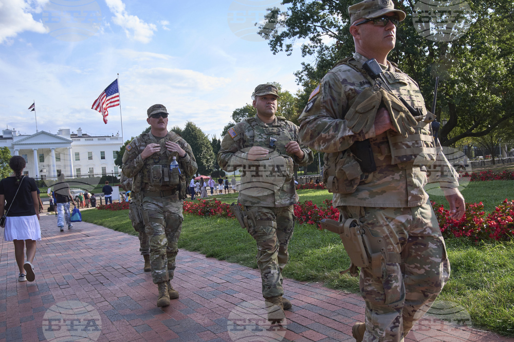 Armed National Guard soldiers from West Virginia patrol the Mall near the Smithsonian Air and Space Museum in Washington, as part of President Donald Trump's order to impose federal law enforcement in the nation's capital, Tuesday, Aug. 26, 2025. (AP Photo/J. Scott Applewhite)