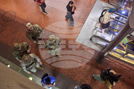 Armed members of the South Carolina National Guard patrol inside the metro system, Tuesday, Aug. 26, 2025, as seen from a level above, in downtown Washington. (AP Photo/Jacquelyn Martin)