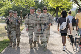 Members of the West Virginia National Guard patrol on the National Mall, Tuesday, Aug. 26, 2025, in Washington. (AP Photo/Jose Luis Magana)