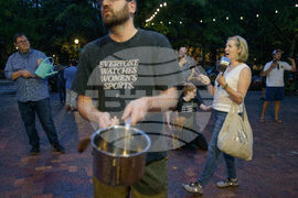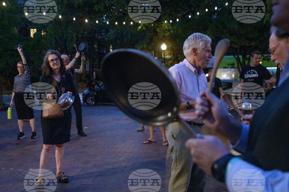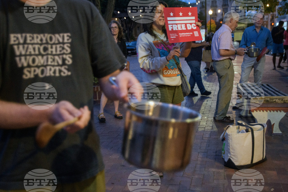 People hold a grassroots, daily, five-minute pots and pans protest to demonstrate against President Donald Trump's immigration policies, in the Mt. Pleasant neighborhood of Washington, Tuesday, Aug. 26, 2025. (AP Photo/Rod Lamkey, Jr.)