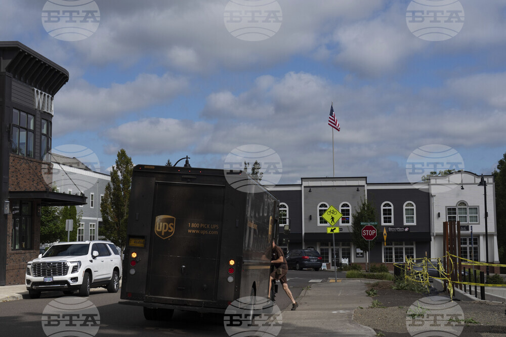 CORRECTS COMPANY NAME: A UPS driver gets into their vehicle after delivering packages at A Sight For Sport Eyes, a brick-and-mortar and e-commerce store for sport goggles, Aug. 20, 2025, in West Linn, Ore. (AP Photo/Jenny Kane)