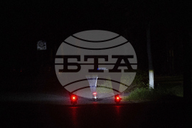 Three young people ride their e-scooters through a street in Adlershof during a widespread power cut in south-east Berlin, Tuesday, Sept. 9, 2025. (Bernd von Jutrczenka/dpa via AP)