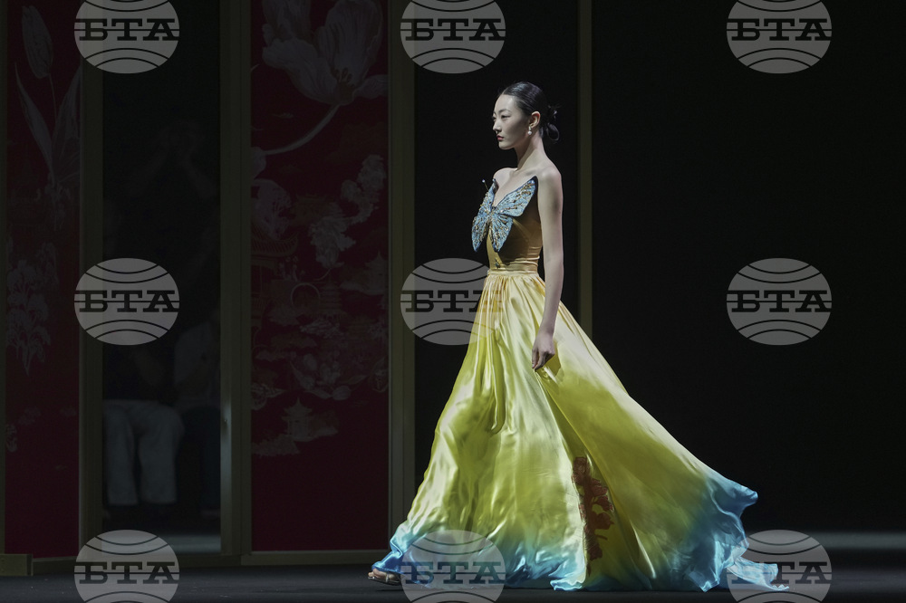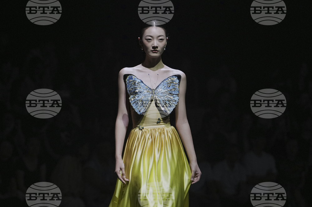 Models present the creations by Liu Hongchao collection during the SS2026 China Fashion Week, in Beijing, China, Thursday, Sept. 11, 2025. (AP Photo/Andy Wong)