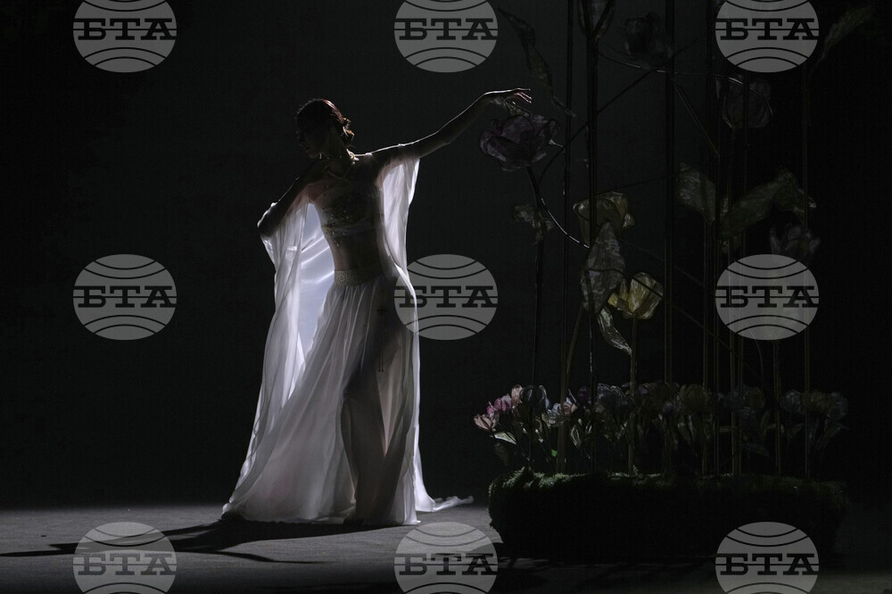 A model presents a creation by Liu Hongchao collection during the SS2026 China Fashion Week, in Beijing, China, Thursday, Sept. 11, 2025. (AP Photo/Andy Wong)