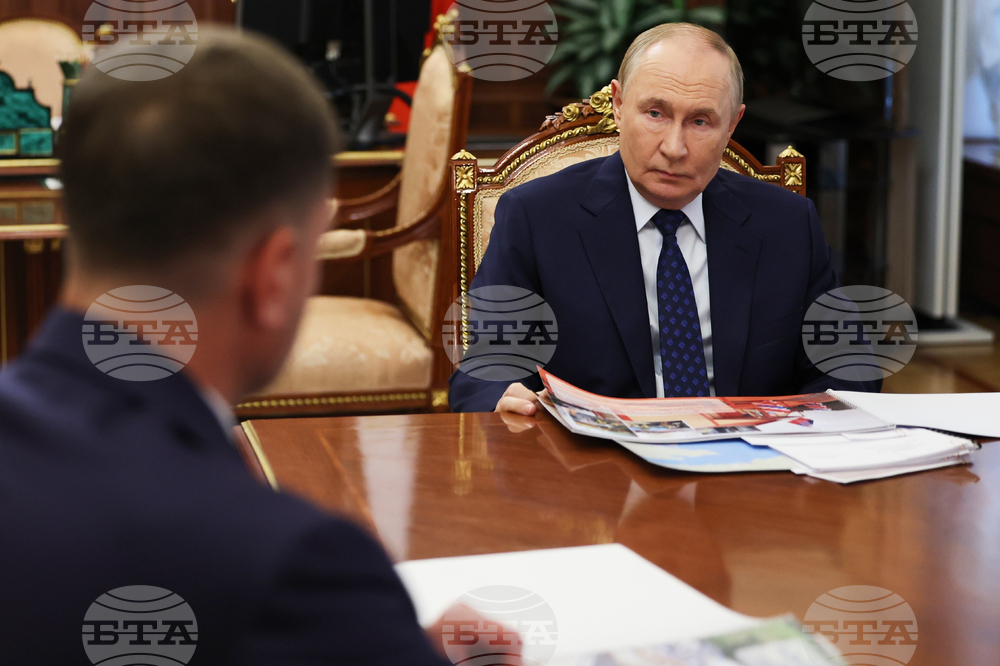Russian President Vladimir Putin listens to Moscow-appointed head of Russian-controlled Zaporizhzhia region Yevgeny Balitsky during their meeting at the Kremlin in Moscow, Russia, on Wednesday, Sept. 24, 2025. (Alexander Kazakov, Sputnik, Kremlin Pool Photo via AP)
