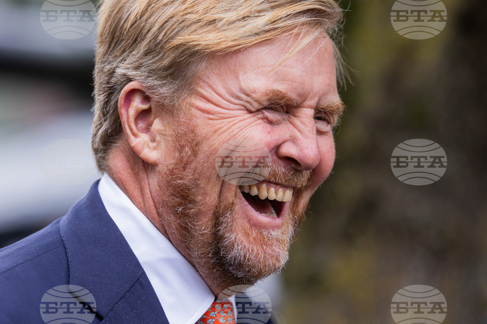 Dutch King Willem-Alexander laughs during a visit to the I German-Dutch Corps, in Muenster, Germany, Thursday Sept. 25, 2025. (Rolf Vennenbernd/dpa via AP)