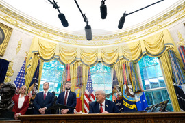 President Donald Trump speaks after signing an executive order regarding TikTok in the Oval Office at the White House, Thursday, Sept. 25, 2025, in Washington, as Attorney General Pam Bondi, Treasury Secretary Scott Bessent and Vice President JD Vance listen. (AP Photo/Alex Brandon)