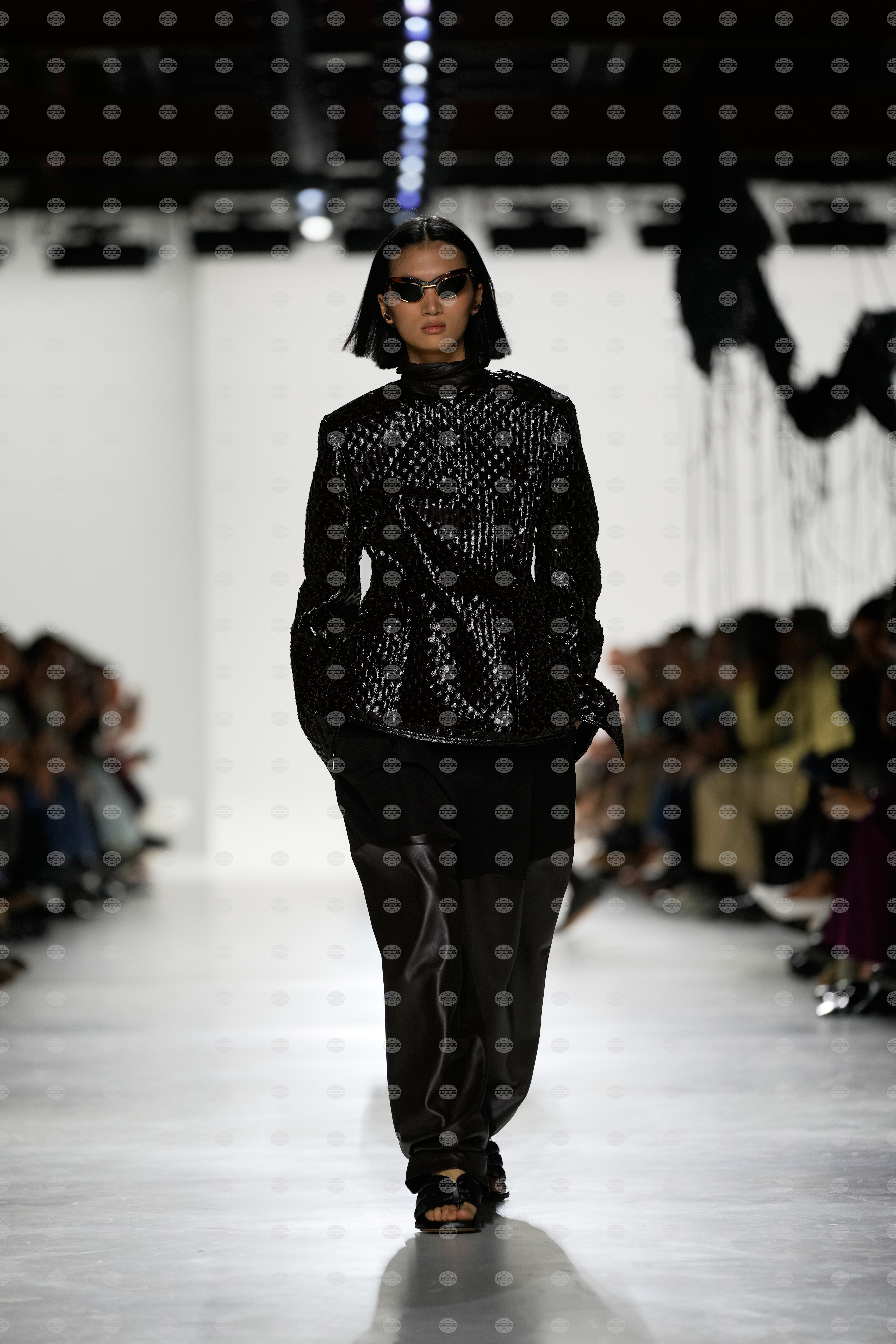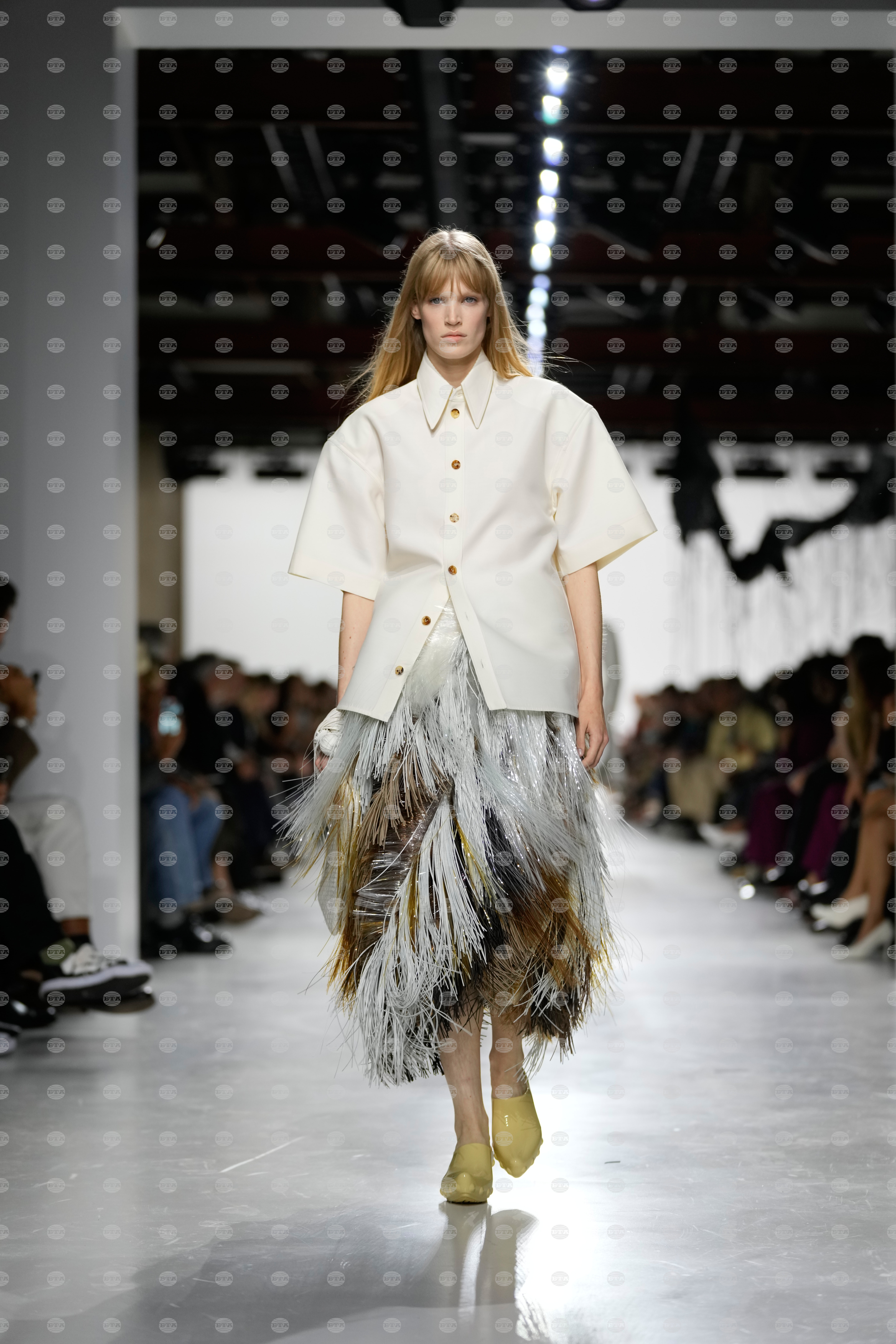 A model wears a creation during the Bottega Veneta women's Spring-Summer 2026 fashion show, in Milan, Italy, Saturday, Sept. 27, 2025. (AP Photo/Luca Bruno)