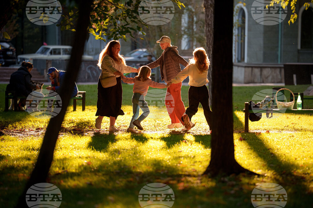 Women and children dance in a park in downtown Chisinau, Moldova, Saturday, Sept. 27, 2025. (AP Photo/Vadim Ghirda)