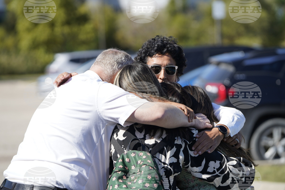 Scenes from reunification area at the Trillium Theater in Grand Blanc, Mich on Sunday, Sept. 28, 2025. (Lukas Katilius/The Flint Journal via AP)