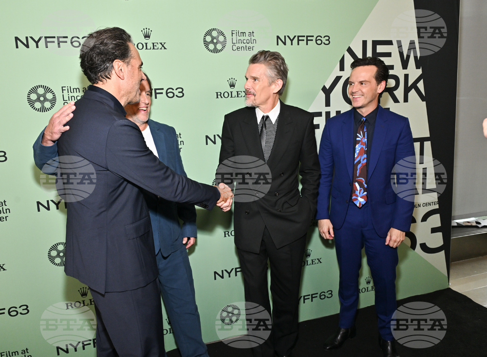Bobby Cannavale, left, Richard Linklater, Ethan Hawke and Andrew Scott attend the premiere of "Blue Moon" at Alice Tully Hall during the 63rd New York Film Festival on Monday, Sept. 29, 2025, in New York. (Photo by Evan Agostini/Invision/AP)