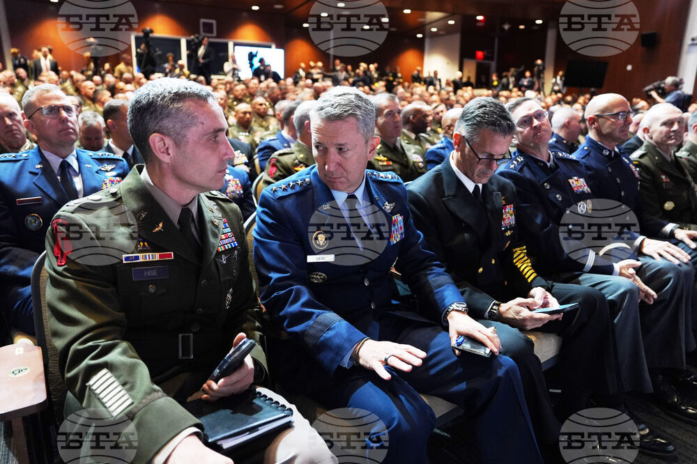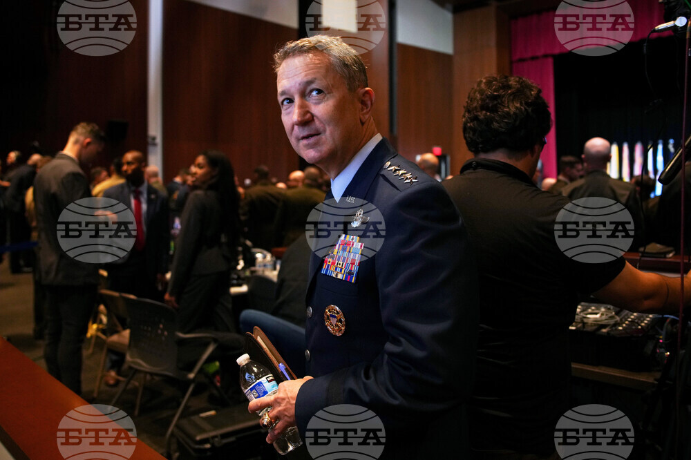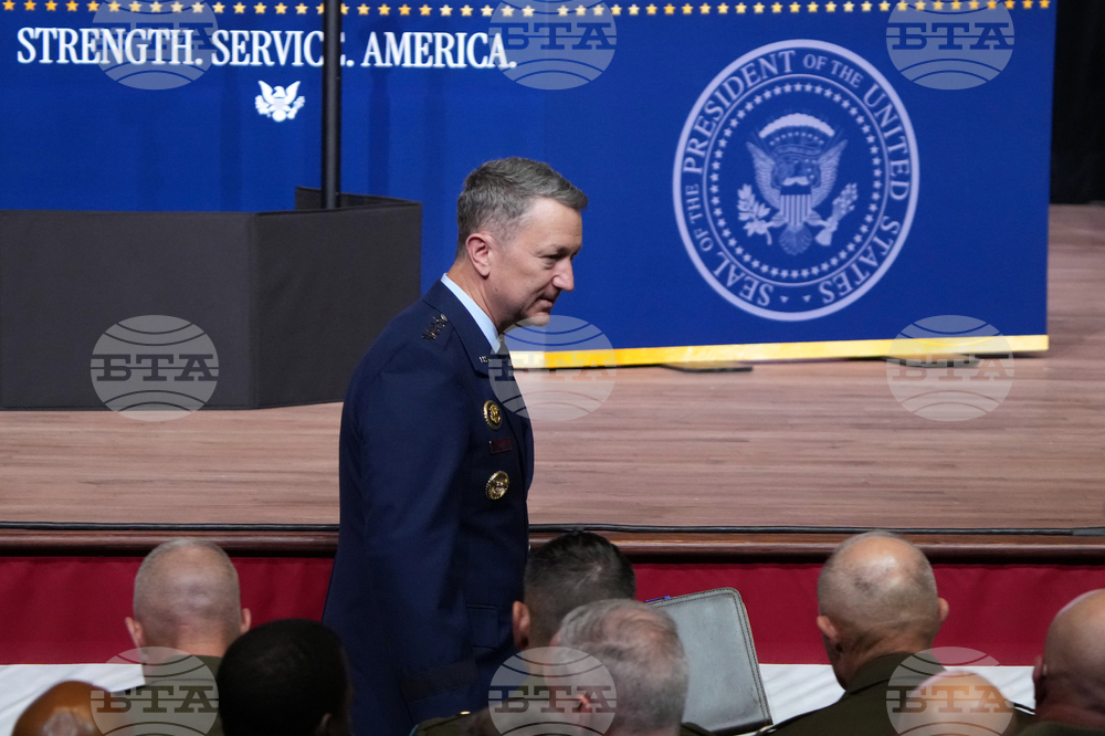 hairman of the Joint Chiefs of Staff Air Force Gen. Dan Caine, left, greets Secretary of Defense Pete Hegseth as he arrives to speak to senior military leaders at Marine Corps Base Quantico, Tuesday, Sept. 30, 2025 in Quantico, Va. (Andrew Harnik/Pool via AP)