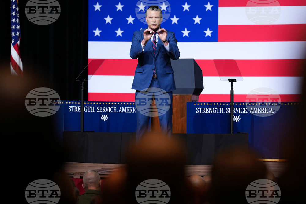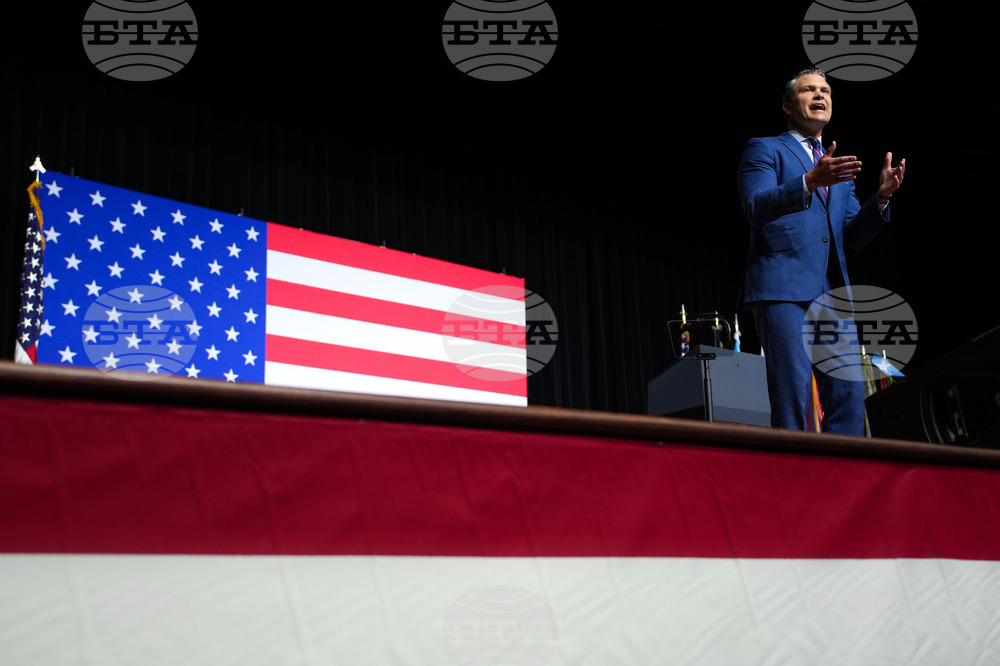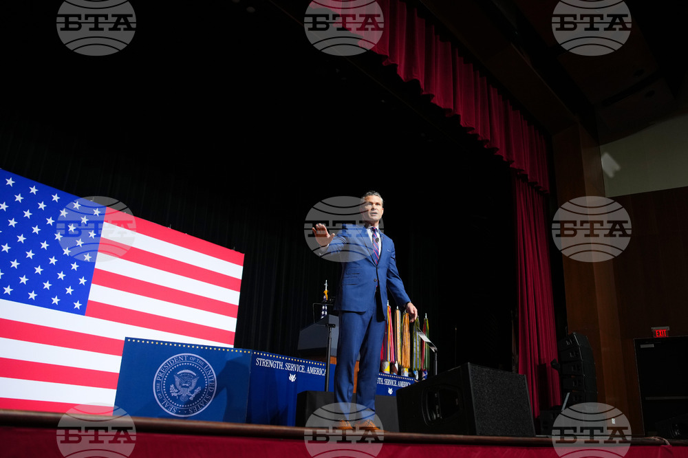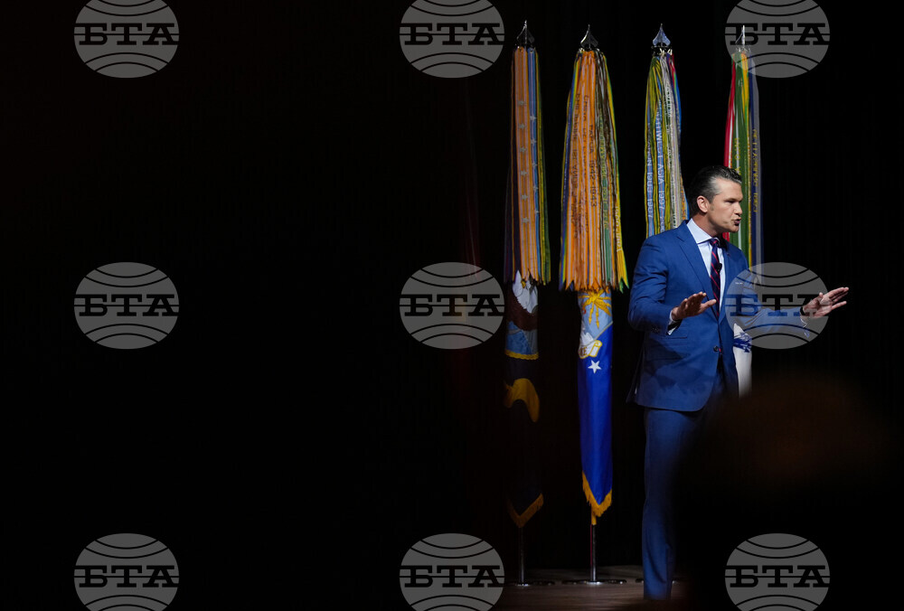 Defense Secretary Pete Hegseth speaks to a gathering of top U.S. military commanders at Marine Corps Base Quantico, Tuesday, Sept. 30, 2025, in Quantico, Va. (AP Photo/Evan Vucci)