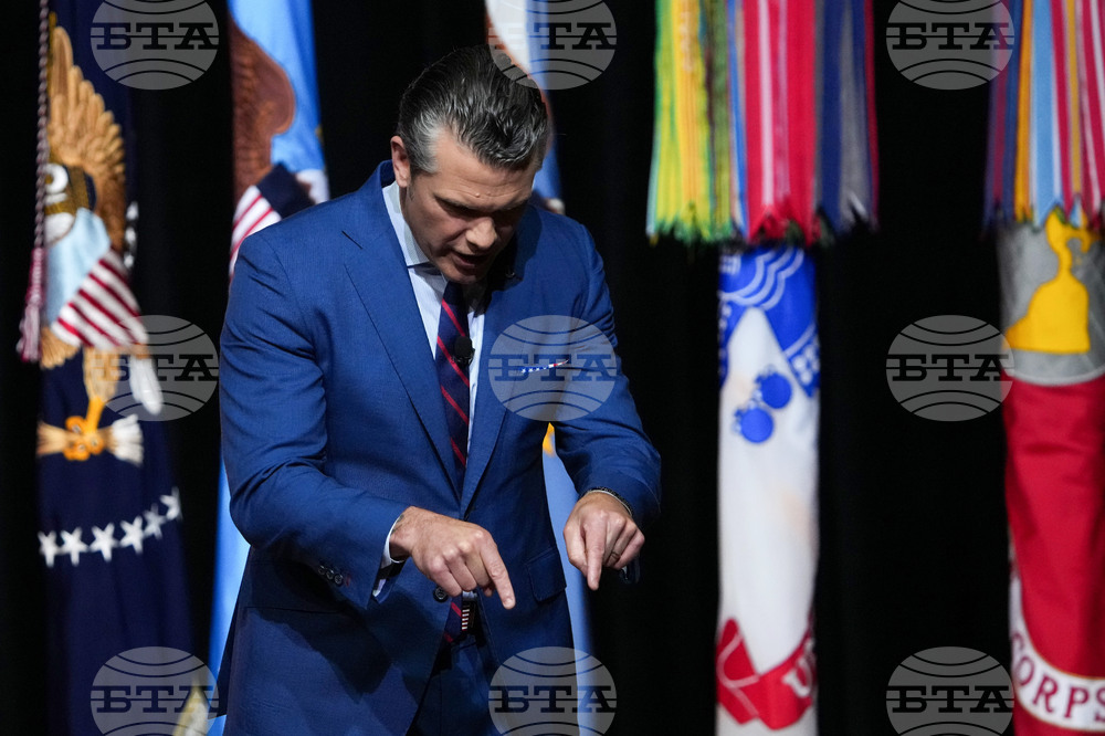 Secretary of Defense Pete Hegseth speaks to senior military leaders at Marine Corps Base Quantico, Tuesday, Sept. 30, 2025 in Quantico, Va. (Andrew Harnik/Pool via AP)