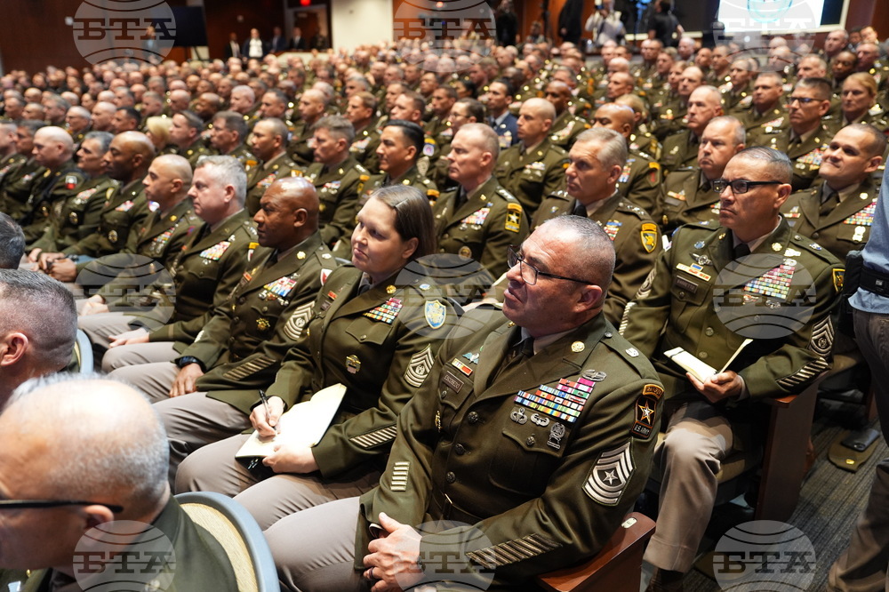 U.S. military senior leadership listen as President Donald Trump speaks at Marine Corps Base Quantico, Tuesday, Sept. 30, 2025 in Quantico, Va. (AP Photo/Evan Vucci)