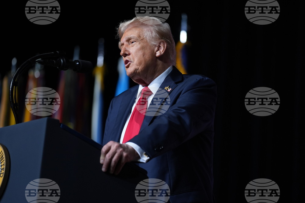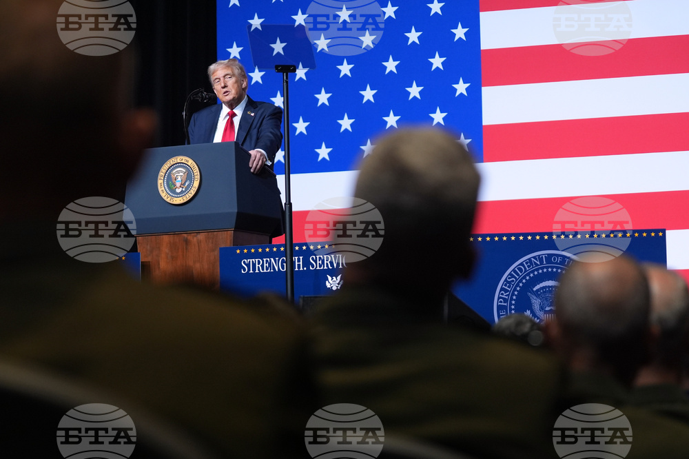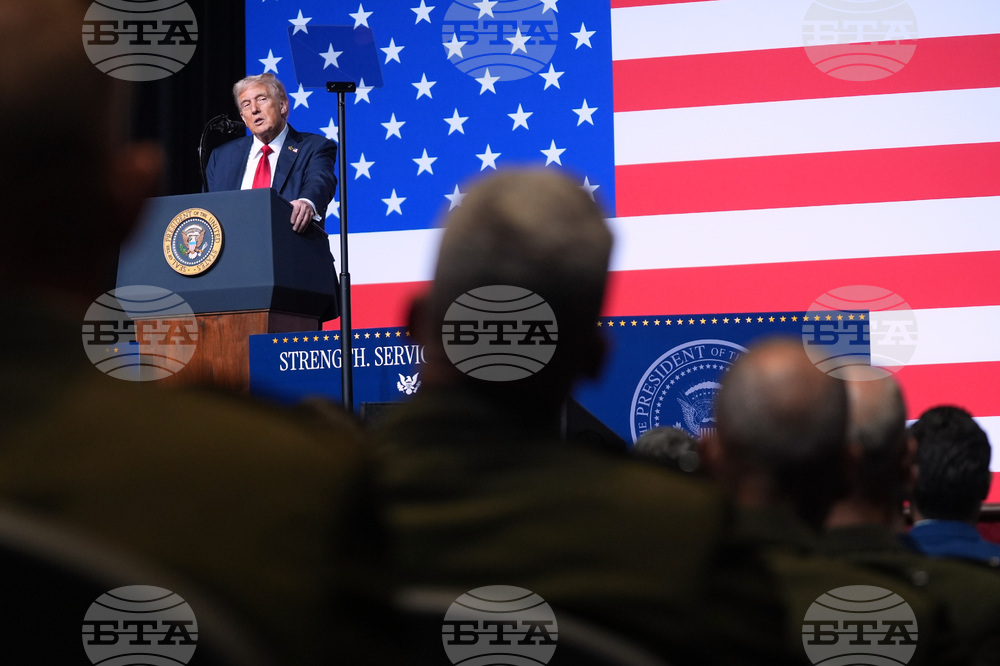 President Donald Trump speaks to a gathering of top U.S. military commanders at Marine Corps Base Quantico, Tuesday, Sept. 30, 2025, in Quantico, Va. (AP Photo/Evan Vucci)