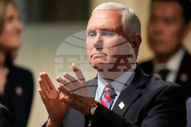 Former Vice President Mike Pence applauds prior to his introduction at the Harvard Kennedy School's John F. Kennedy Jr. Forum, Tuesday, Sept. 30, 2025, in Cambridge, Mass. (AP Photo/Charles Krupa)