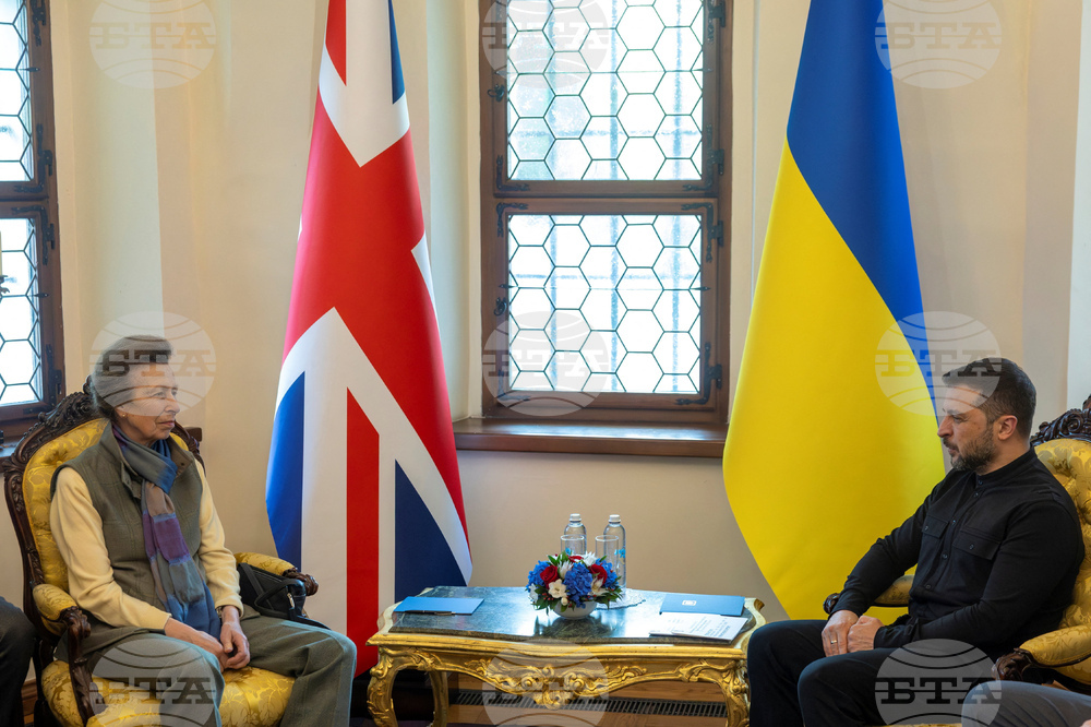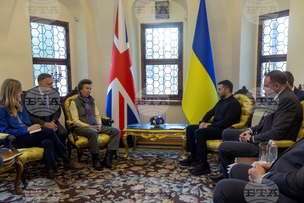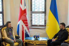 Ukraine's President Volodymyr Zelenskyy meets Britain's Princess Anne in Kyiv, Tuesday Sept. 30, 2025. (Thomas Peter/Pool via AP)