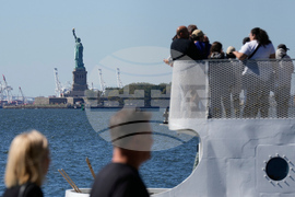 People board a boat headed to the Statue of Liberty in New York, Wednesday, Oct. 1, 2025. (AP Photo/Seth Wenig)