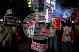 FILE - Demonstrators take part in a 'protest rave' against racism and nationalist party Sanseito ahead of the upper house election in the Shinkuku district of Tokyo, on July 13, 2025. (AP Photo/Louise Delmotte, File)
