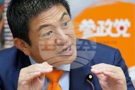 Sohei Kamiya , leader of a surging nationalist party Sanseito, speaks during an interview with the Associated Press at his party's headquarter on Sept. 2, 2025, in Tokyo. (AP Photo/Eugene Hoshiko)