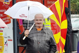 Скопие (2 октомври 2025) Синдикатът на работниците от комуналните дейности (СУТКОЗ) - единственият браншов синдикат в Северна Македония - организира протест. Причината е неизплатеното възнаграждение за месец август, както и неплатените здравни и социални осигуровки. Протестиращите са служители във фирмите „Флораком“ и „Луна“, които са дъщерни дружества на публичното предприятие „Паркове и зеленина“. На снимката: председателят на синдиката СУТКОЗ Стоянче Кашиковски.