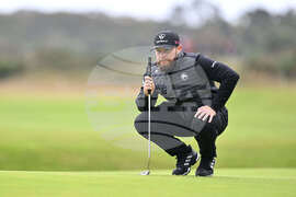 Dustin Johnson looks over the 15th green during the first round of the Dunhill Links Championship golf tournament at the Carnoustie Golf Links, Thursday, Oct. 2, 2025, in Carnoustie, Scotland. (Malcolm Mackenzie/PA via AP)