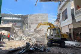 Rescuers use heavy machines to clear up the rubble of a building that collapsed at an Islamic boarding school during the search for victims in Sidoarjo, East Java, Indonesia, Saturday, Oct. 4, 2025. (AP Photo/Trisnadi)