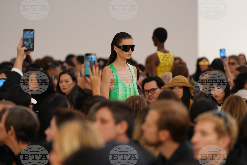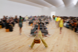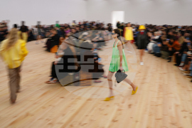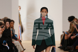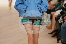 A model wears a creation as part of the Loewe Spring/Summer 2026 collection presented in Paris, Friday, Oct. 3, 2025. (AP Photo/Aurelien Morissard)
