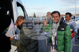 Malaysian activists from the Global Sumud Flotilla react after arriving at Istanbul Airport in Istanbul, Turkey, Saturday, Oct. 4, 2025. (AP Photo/Khalil Hamra)