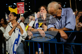 People attend a rally calling for the release of all hostages held by Hamas in the Gaza Strip and urges a ceasefire, in Tel Aviv, Israel, Saturday, Oct. 4, 2025. ahead of the second anniversary of the Israel-Hamas war. (AP Photo/Ohad Zwigenberg)
