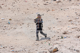Somali army personnel patrol near the scene of the aftermath of an hours-long militant attack in Mogadishu, Somalia, on Sunday, Oct. 5, 2025. (AP Photo/Farah Abdi Warsameh)