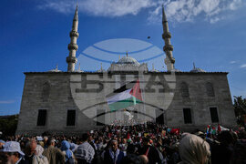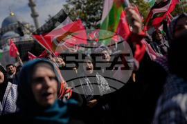 People gather during a pro-Palestinian rally in Istanbul, Turkey, Sunday, Oct. 5, 2025. (AP Photo/Khalil Hamra)